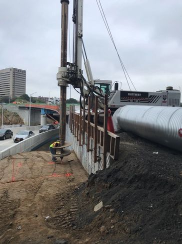 New sound wall along the LIE. Drilling shafts and setting beams for the residents of Queens.